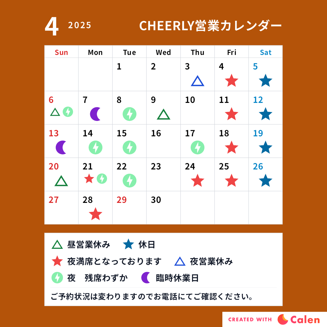 早めのご予約おすすめいたします。売り切れ次第終了になります
